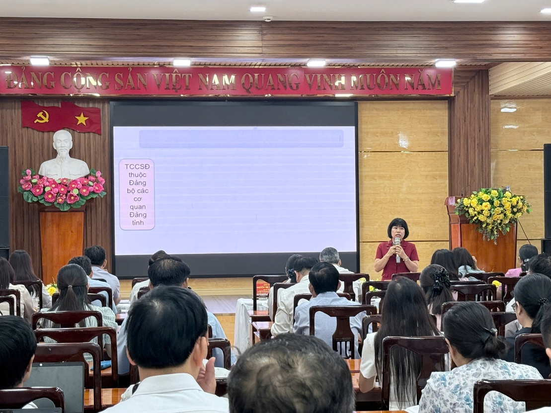 Báo cáo viên- ThS.Nguyễn Thị Khuyến - Phó Trưởngkhoa Xây dựng Đảng, Trường Chính trị tỉnh triển khai chuyên đề 1: Tổ chức cơ sở đảng và thực hiện nhiệm vụ chính trị của các loại hình tổ chức cơ sở đảng - Ảnh: Tuyết Nhung